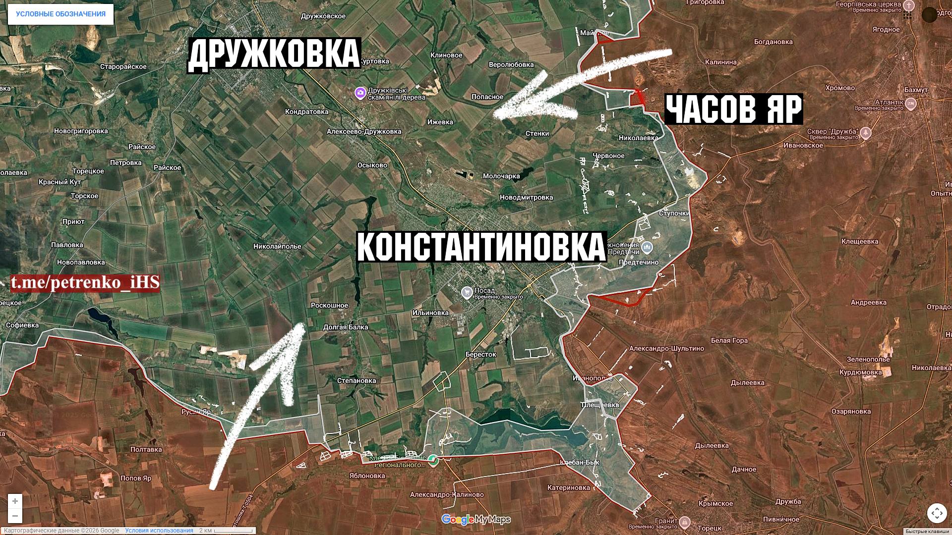 Konstantinovka suunas on Vene väed kindlustanud oma positsioonid Tšasov Jari loodeservas ja ründavad lääne suunas mööda raudteed. Vaenlase eesmärk on moodustada külgnevad tugipunktid Konstantinovka logistika ründamiseks, sealhulgas linna frontaalrünnakuks.