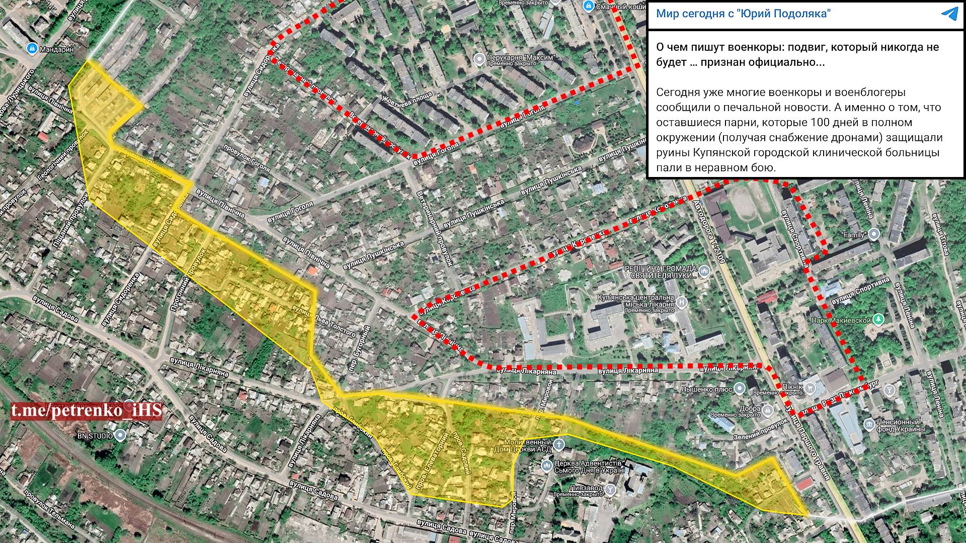 ▪️Kupjanskis on linna põhiosas tohutu "hall" tsoon. Venemaa relvajõud säilitavad stabiilse kontrolli linna paremkalda põhjaosas, edenedes Petrovpavlovka lähedal ja kontrollivad suuremat osa Kurilovkast.