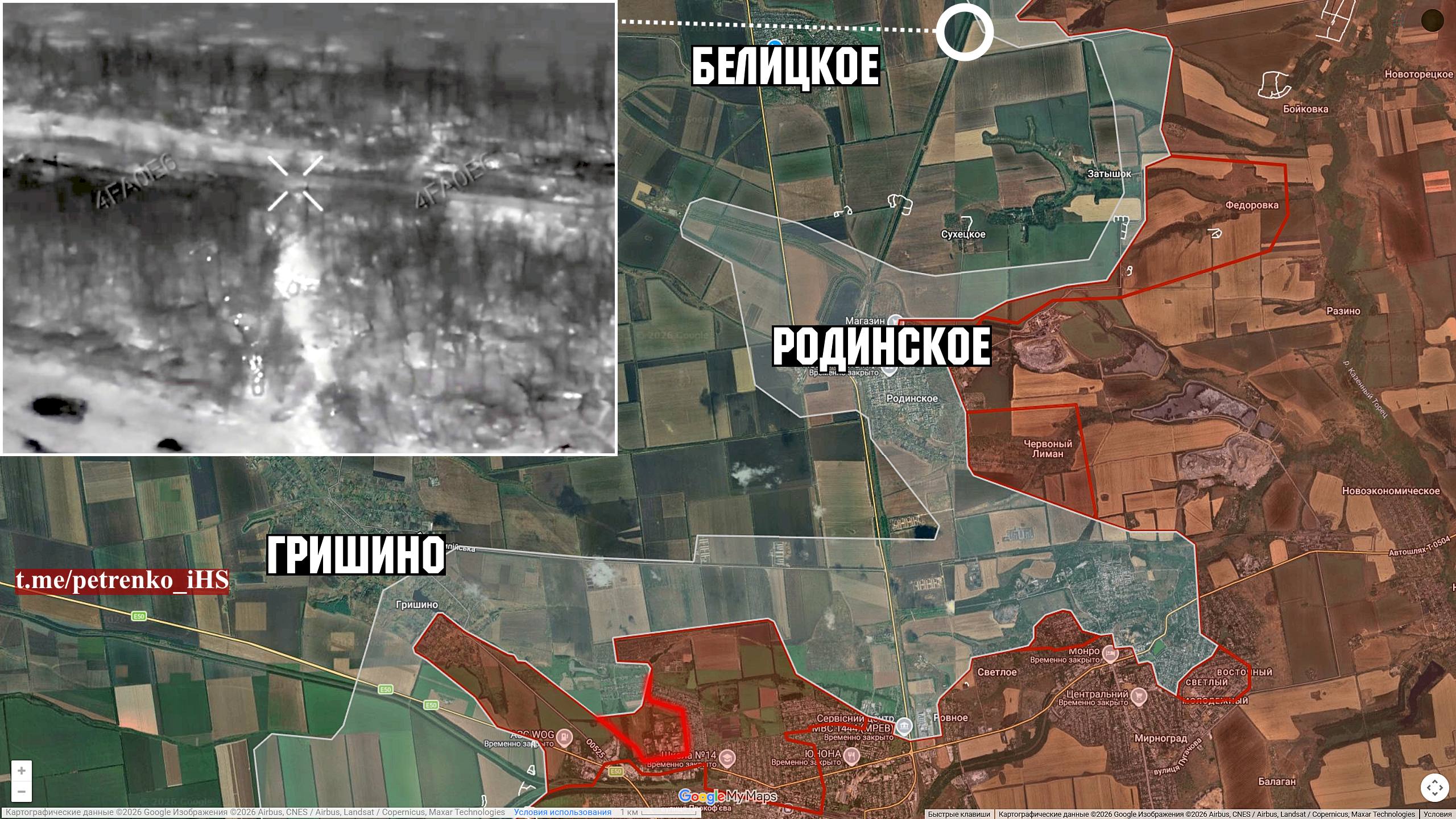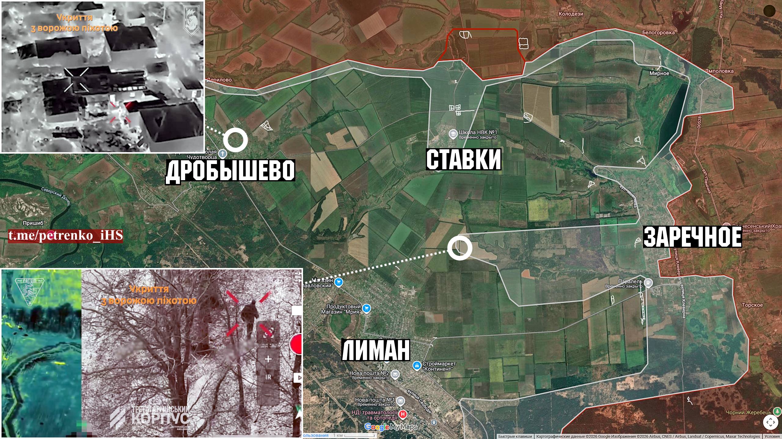 Konstantinovski suund: Berestok — hallis tsoonis. Vaenlane on jalgealust saanud asula idaosas, lahingud jätkuvad kesklinnas. Taevas on vaenlase lennuväe vahenditest sõna otseses mõttes must, droonide küllastus on ülitihe. Igasugune liikumine peab olema läbimõeldud, kasutades kamuflaaži ja lühikesi läbisõite. Olukord on dünaamiline, juhtimisliin on ebastabiilne.