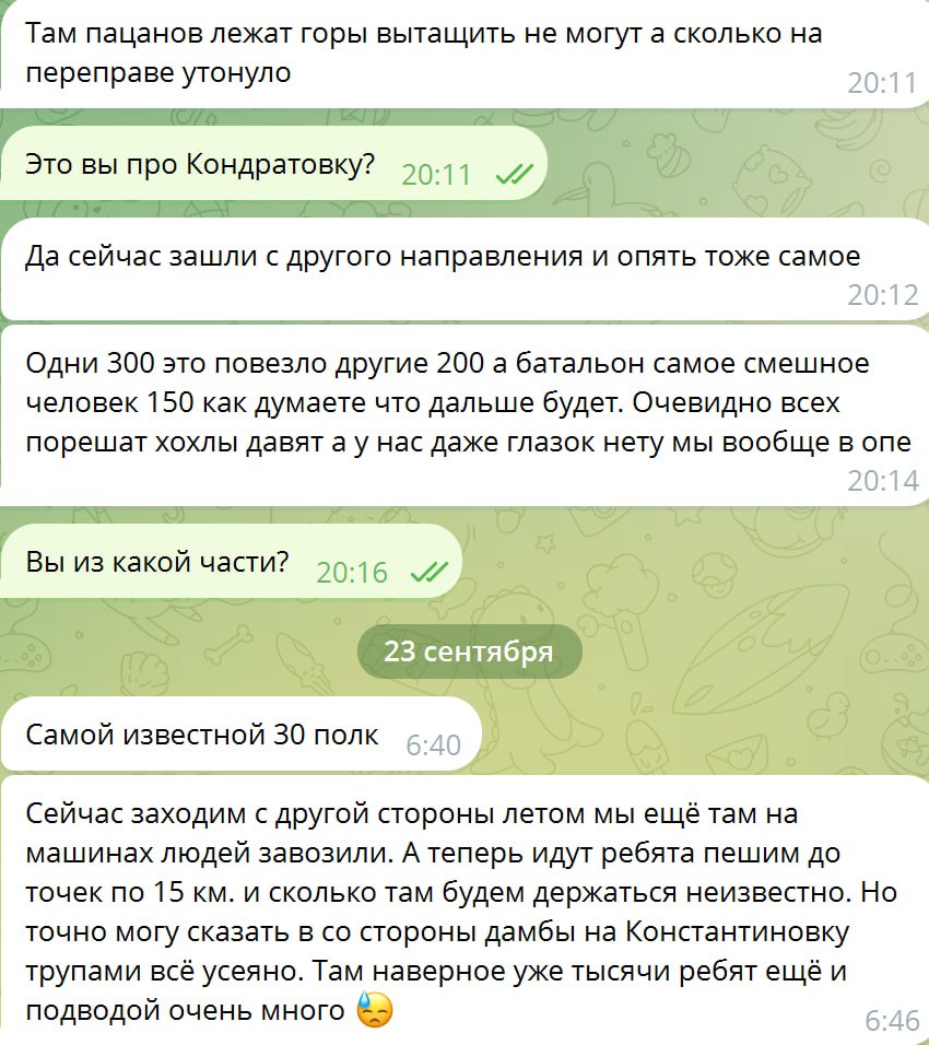 See saab olema tavaline raport, selline, mida me päeva jooksul avaldame. Aga seekord oleme teinud järjekordse ekraanipildi 30. motoriseeritud laskurpolgu sõduri sõnumist. Saame selliseid mitu korda päevas.